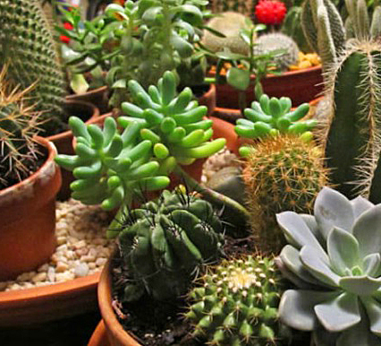 Bright or filtered light is best for all cactus and succulents. Direct sun through a window is fine, but some locations may be too hot and will burn the plants. Watch them carefully for signs of sunscald, especially in the summer.