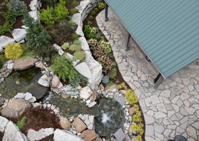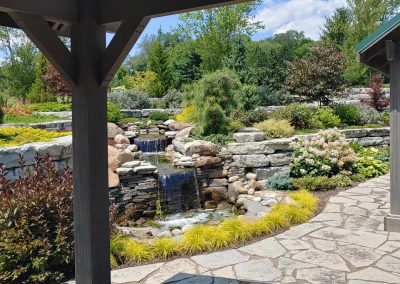 When we moved our offices to be closer to our family farm, we decided to create this example of what our landscape designers can do. The area around our new building was merely a flat lawn that was fully open to Beaver Valley Rd. For the first time in the company’s history, we had a place to build a large outdoor space to showcase our work, and provide a generous area to accommodate events for the ever-growing company.