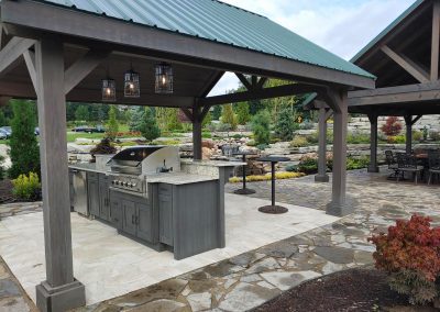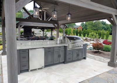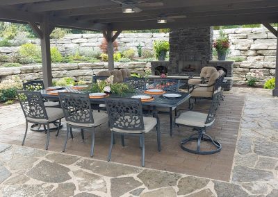 We incorporated several of our Outdoor Living products. We are a distributor for NatureKast Outdoor Cabinetry so we installed a great outdoor kitchen. In addition to different types of paver materials and decking, we included Pavilion structures from Berlin Gardens and a custom-built fireplace structure. All components that we work into Outdoor Living Spaces for our customer’s homes.