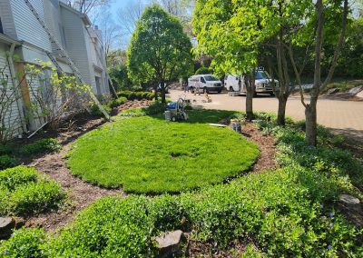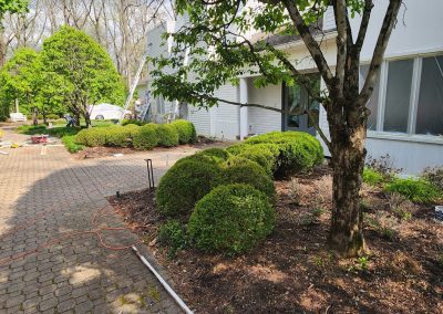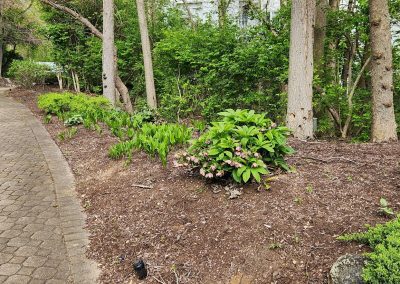 - They wanted to keep and re-use existing boxwood, Vinca, Chamaecyparis Mops and Coralbells that they had just installed.