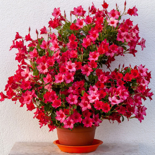 Once the plant is moved into storage cut back on water. You only need to water it occasionally. Just don’t let it dry out completely. And there is no need to fertilize the plant over winter at all. In the spring after all danger of frost has passed and temperatures are consistently above 60 degrees F, you can move your Mandeville back outside. Don’t be alarmed if growth produced over winter burns off. This is fairly common. Begin watering on a regular basis and feed with a liquid fertilizer and in no time you will have beautiful flowers again!